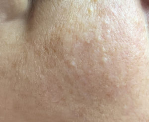 They’re most commonly found around the eyes, particularly the under-eye area, but can also appear on the cheeks, neck, chest, or under the arms.